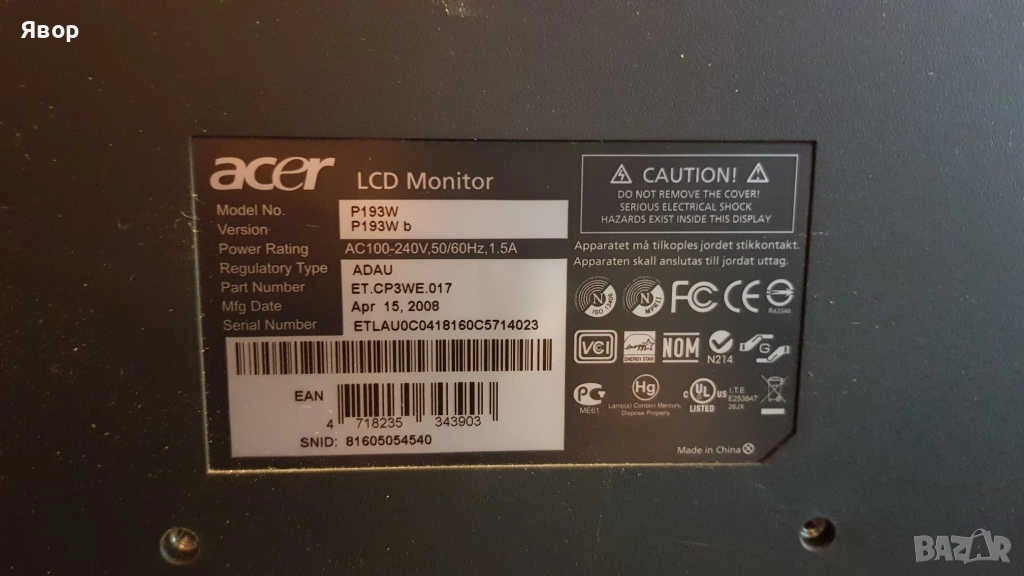 450 , DVD CD ROM drives, Монитор Acer P193W- 19 ”; 60 Hz,