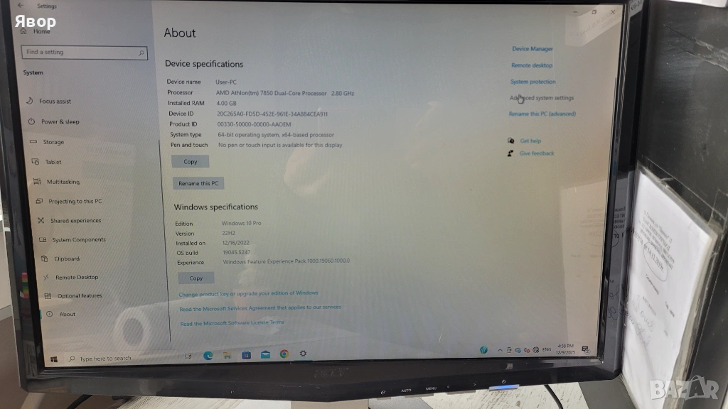 монитор AMD Athlon 7850 Dual Core 2,82