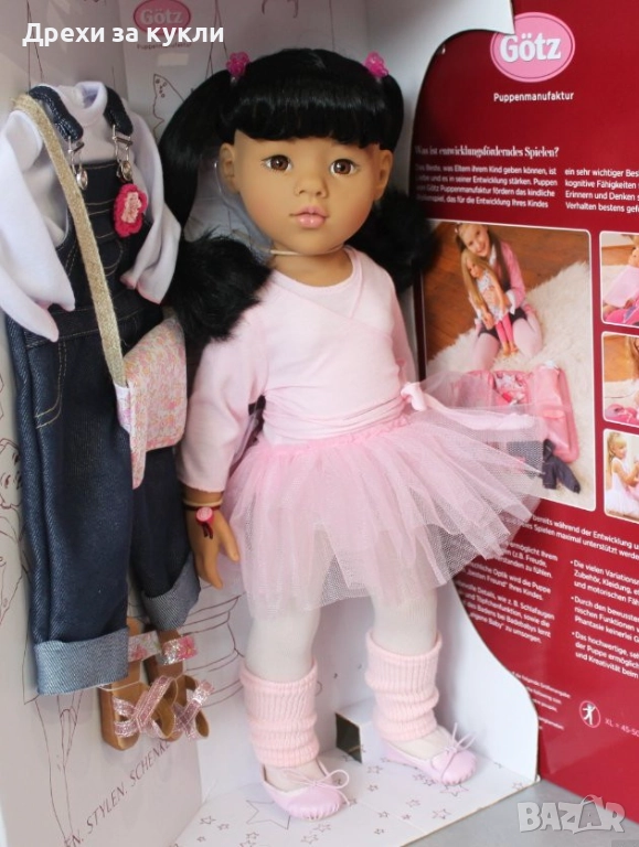 Кукла Хана, азиатска балерина. Произведено от Gotz, немска компания, известна с висококачествените си кукли. Куклата е висока 48 см. Класическото тяло е изработено изцяло от винил и има пет точки на артикулация. Куклата се предлага с два тоалета: основен тоалет на балерина, допълнителен топ с лого, гащеризон, чанта и сандали. Куклата е като нова, съхранявана във витрина, никога не е играно с нея и е от колекция за възрастни. Цена 92.00 евро.