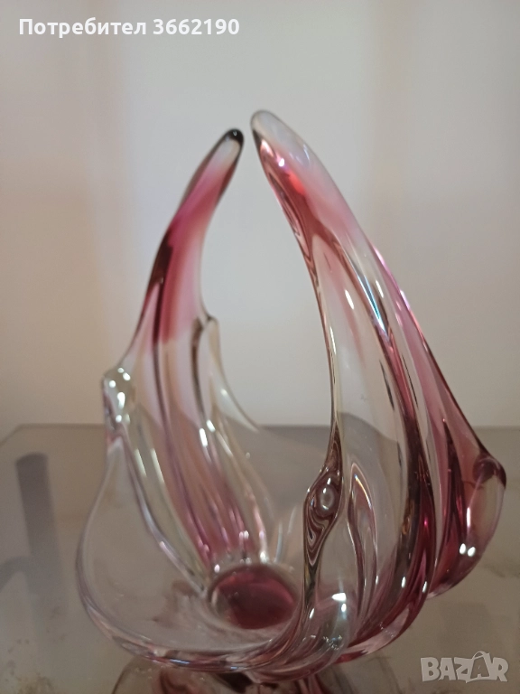 Красиво розово оцветяване в стандартното стъкло.Без увреждане. Фруктиерата е 30 см. висока и широка 25 см.Част от лична колекция. Моля, разгледайте и другите ми обяви!