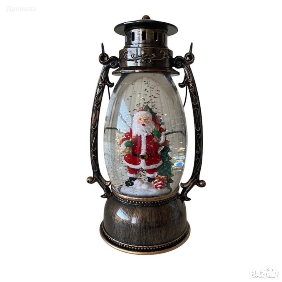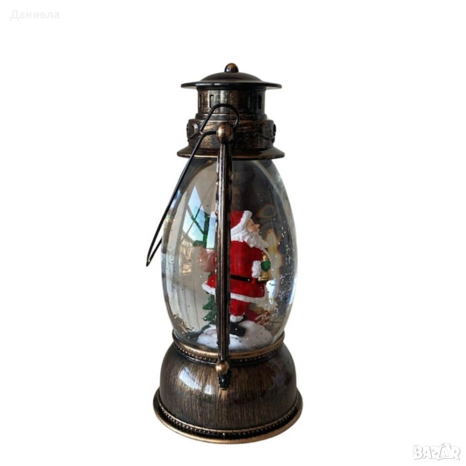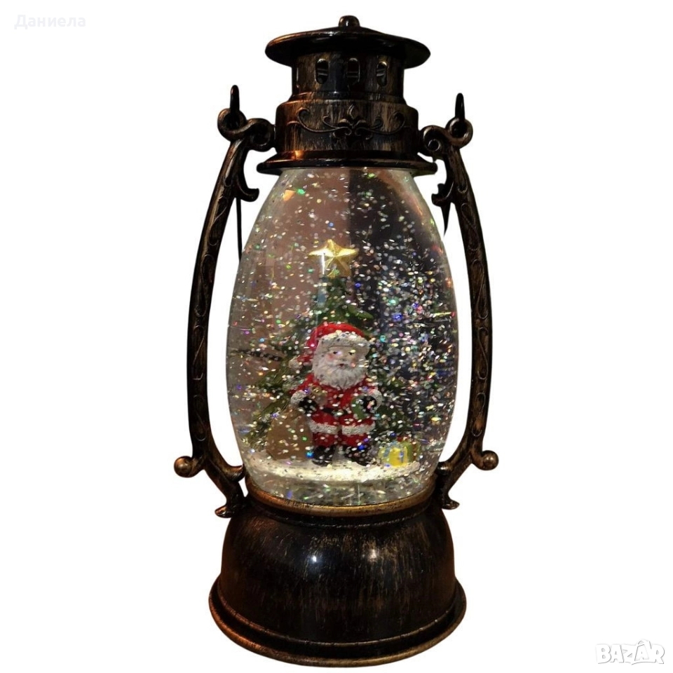 Коледен декоративен фенер – LED светлина, въртяща се фигурка на Дядо Коледа, снеговалеж и музика