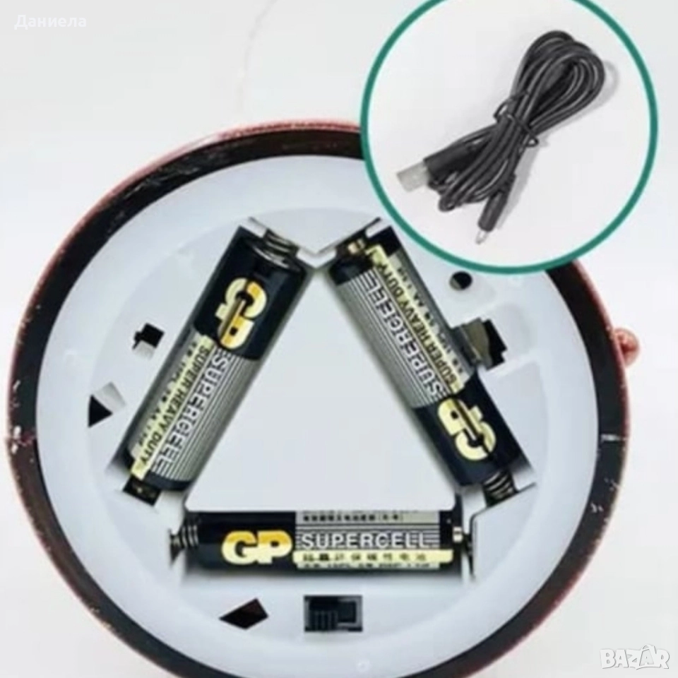 Материали: висококачествена ABS смола и прозрачен корпус с течност и блестящи частици; Размери: височина 24 см (33 см с дръжката), диаметър 14 см; Светлина: топла LED, дълъг живот; Захранване: USB кабел (включен) или 3xAA батерии (не са включени); Безопасност: стабилна основа, LED без нагряване; Допълнителни елементи: автоматичен снеговалеж, опция за музика / само светлина; Подходящ за деца: да – безопасен за използване в интериор; Гаранция: 12 месеца.