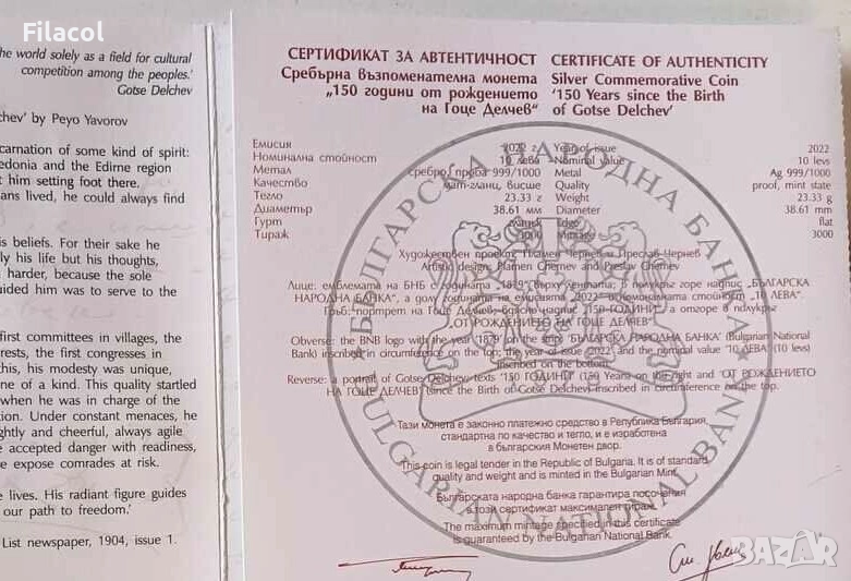 10 лева 2022 година Гоце Делчев, снимка 1 - Нумизматика и бонистика - 52760053 10 лева 2022 година Гоце Делчев, снимка 2 - Нумизматика и бонистика - 52760053 10 лева 2022 година Гоце Делчев, снимка 3 - Нумизматика и бонистика - 52760053 1/3