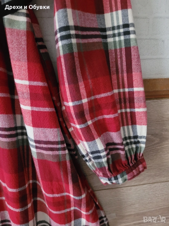 Рокля тип риза “RISE AND SHINE” – Червено каре Комфортна, удобна кройка и актуален дизайн, подходящ както за ежедневието, така и за по-специални поводи. Характеристики: * асиметрична кройка тип риза * Стилен червен каре десен * много приятни на допир материя, мека и топла от 100% плътен памук – удобна за целодневно носене * Закопчаване с копчета отпред и копчета при китките. * Подходяща за комбиниране с кецове, боти или високи ботуши Подчертава фигурата, без да ограничава движението Може да се носи като рокля или с клин/панталон свободна или с коланче по избор. Производство Пакистан Размер по етикет Л/ХЛ Дълга отпред: 86см, отзад 98см. Гръдна 116см Цена 49лв ( 25.05 EURO).