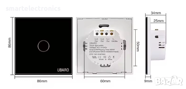 ✅Сензорен ключ за осветление Ubaro, бял.Ключът разполага със светещ индикатор за по-лесно намиране в тъмни помещения.