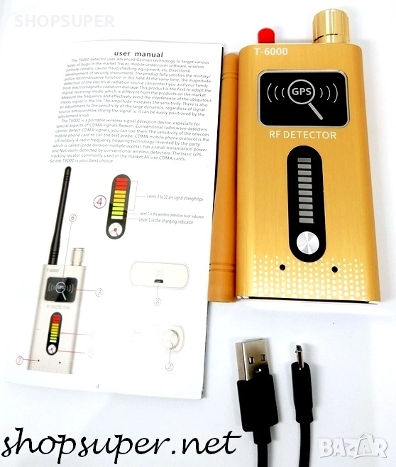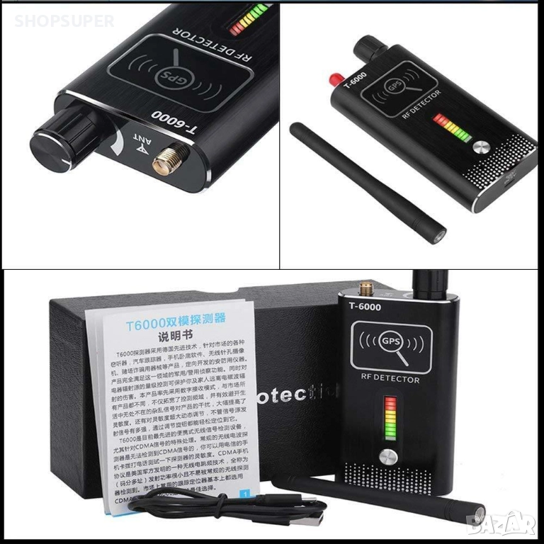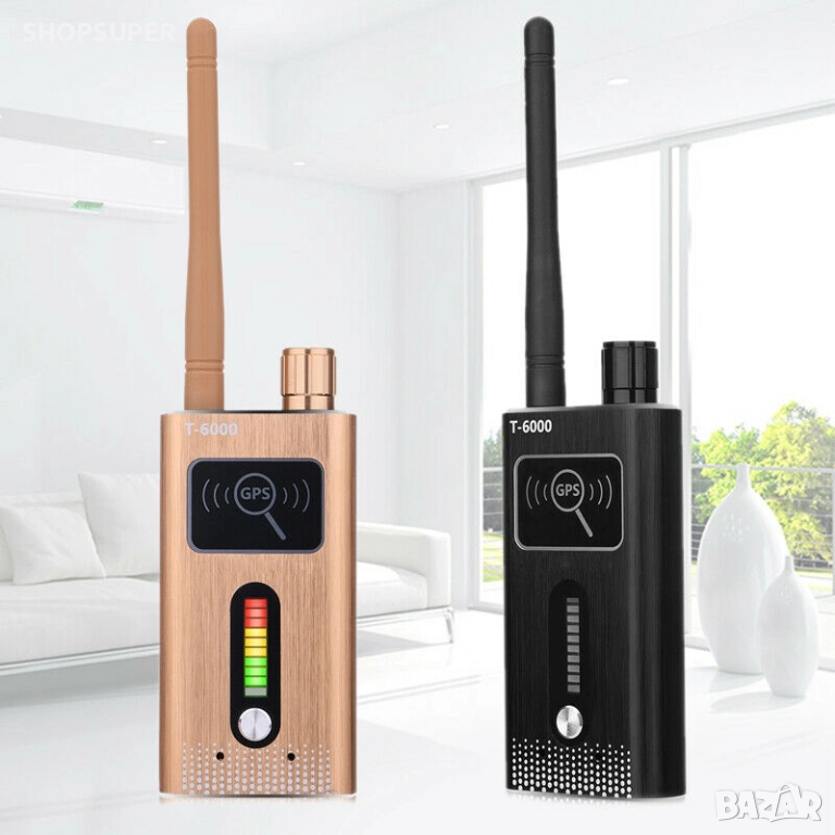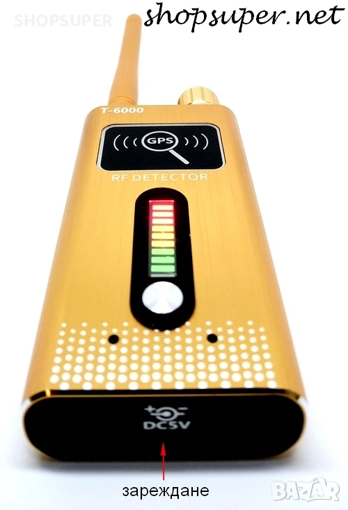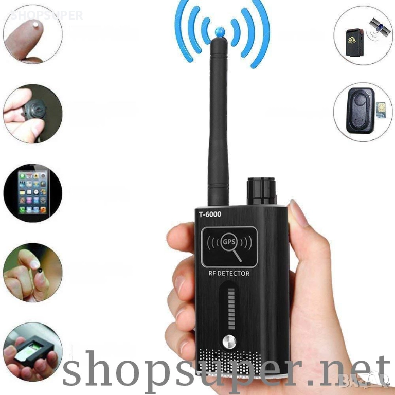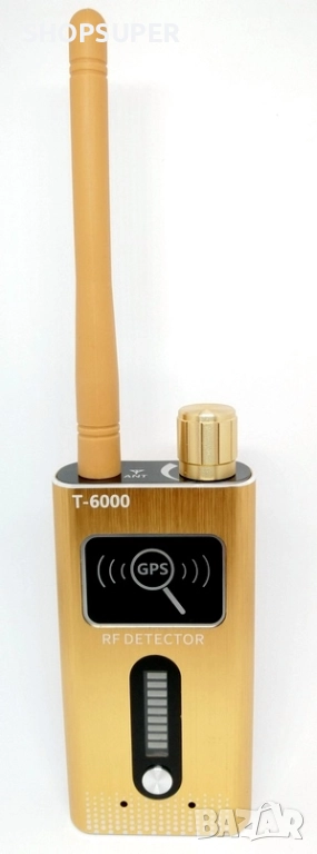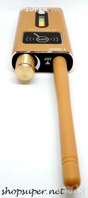 Детектор Модел 5 за GPS проследяващи тракери и шпионски устройства в диапазона от 1 MHz до 8.0 GHz с висока чувствителност от ≤0.03mw. Този детектор е с най-голям обхват.Той открива дори GPS устройства в спящ режим. Има една завиваща се антена,GPS бутон,потенциометър за вкл/изкл с регулиране на чувствителноста и два вида светлинна индикация : за всякакъв вид звукова и видео безжична предавателна техника и за GPS устройства в спящ режим .