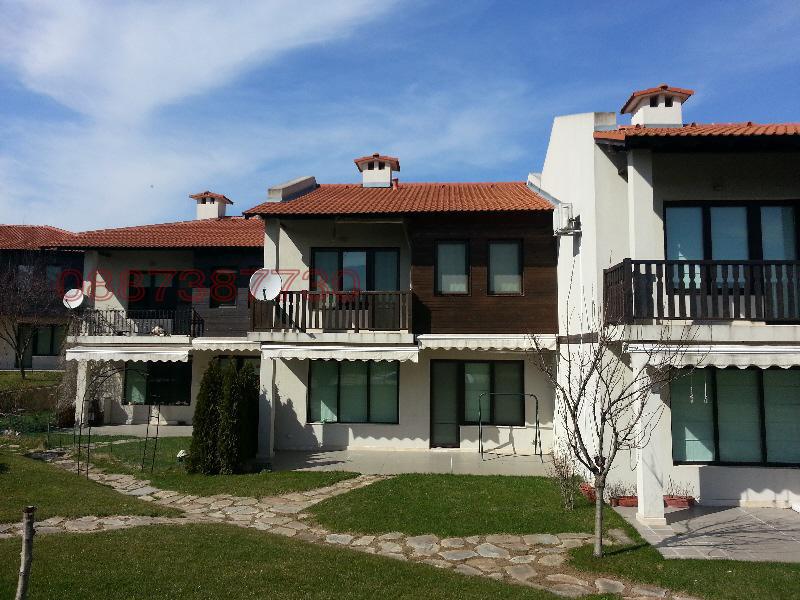 Kъщата е двуетажна, в затворен комплекс с контролиран достъп, с басейн, видеонаблюдение. Къщата е напълно обзаведена и оборудвана. На първи етаж - баня с тоалет, перално помещение, гардеробна, хол, кухня и трапезария. На втория етаж - три спални и голяма баня с вана и тоалет. За дългосрочно отдаване, минимален срок 6 (шест) месеца. Депозит - 1.5 месечен наем. Има самостоятелно паркомясто за къщата. В Комплекса има допълнителни паркоместа. В близост до морето и гората. Такса поддръжка на комплекса - 110 евро на месец. Без домашни любимци.