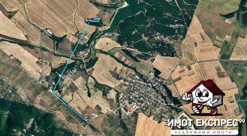 Парцел, на асфалтов път, с лице 150 метра, вид територия Земеделска, НТП Нива, категория 7, с площ 8609 кв.м, подходящ за жилищно или промишлено строителство, на вили, складове, плувен басейн или друго, за селско-стопанска дейност или развиване на хотелиерски тип бизнес. На 50 метра от имота има електрически стълбове. Язовирът е на 260 метра.