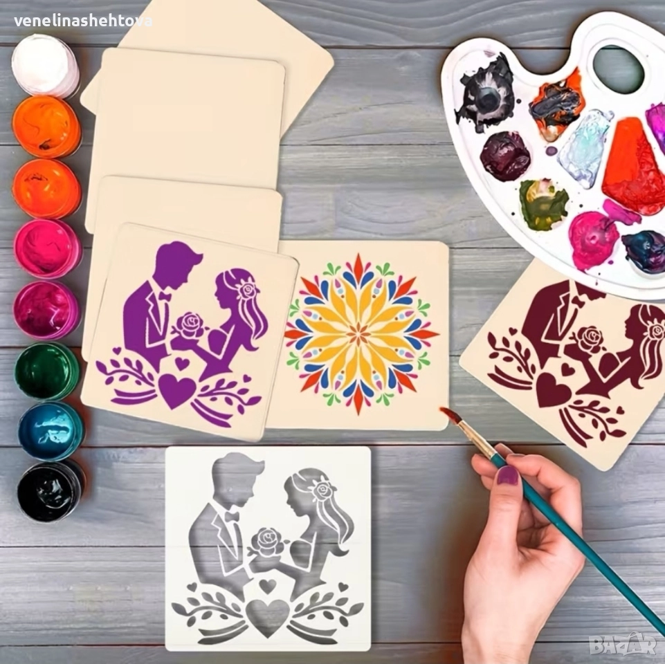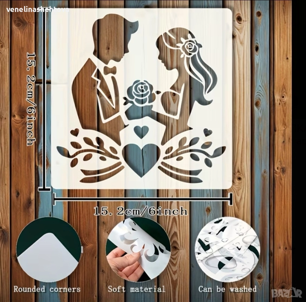 Шаблон за многократна утотреба за различни видове повърхности, с който всичко става още по-красиво, бързо и лесно. Подходящ за украса на торти с помощта на спрей, какао, пудра захар и др. Върху тениски с боя за текстил, също така и за скрапбукинг проекти.
