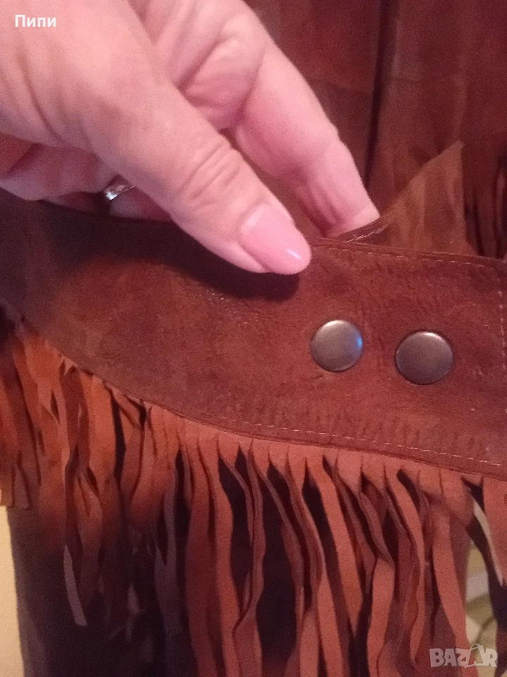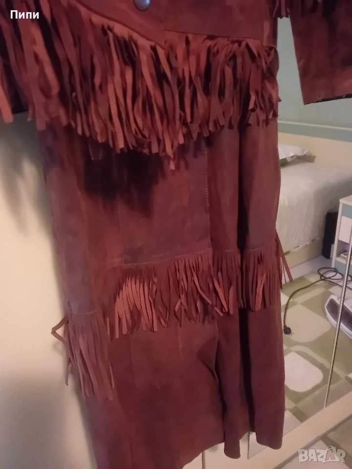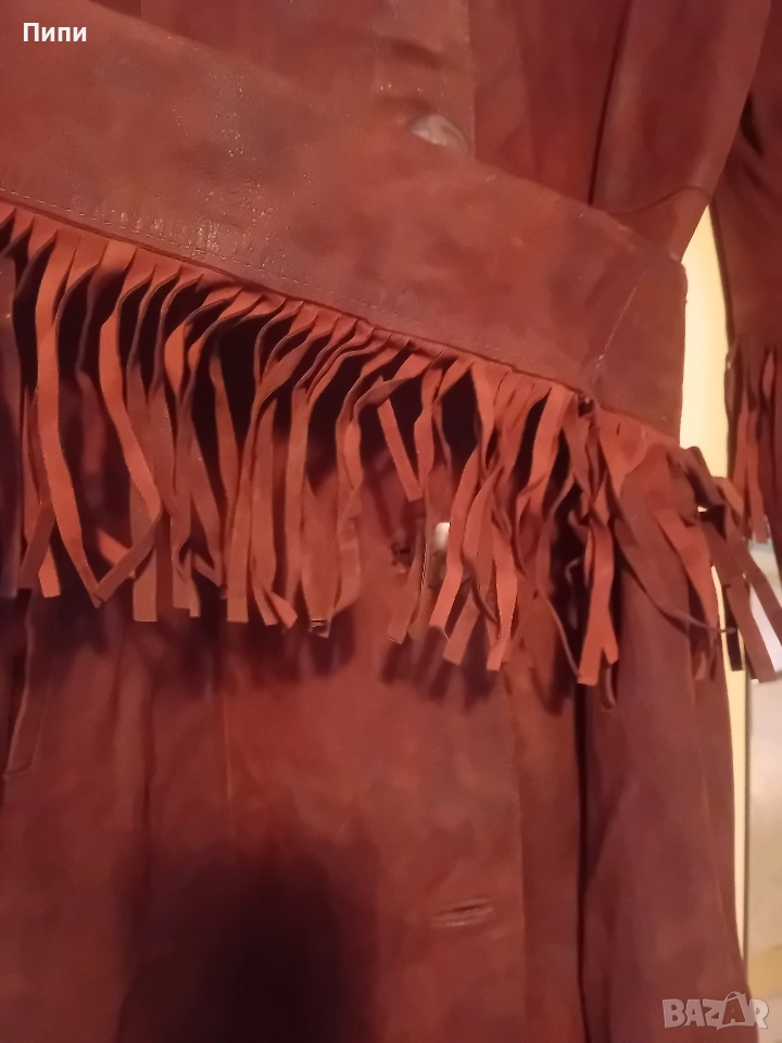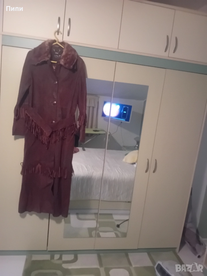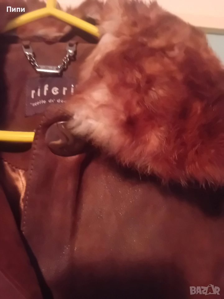 Уникално, дълго до глезена, от естествена мокра кожа с естествен косъм яка → Обява 52770650