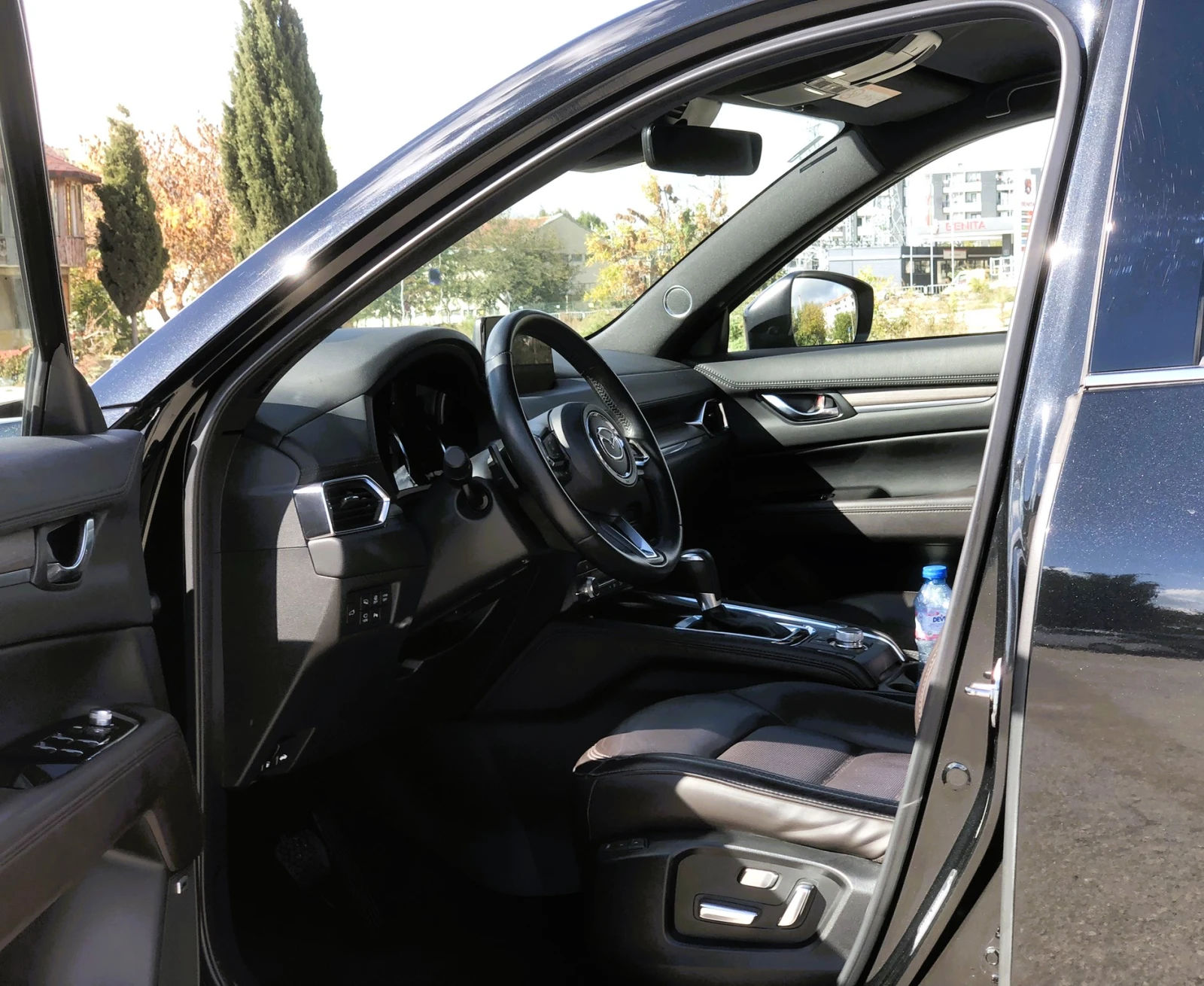 Предимства: - уникат - Black Edition - най-високото ниво на изпълнение за Германия с всички възможни екстри освен панорамен люк - нов внос - докарана от Германия през септември; - 1 собственик в България; - напълно обслужена в Mazda Германия и България; - безплатна пътна помощ в Европа и европейска част на Турция. ЦЕНА 63 900 ЛЕВА Цвят - Jet Black Metallic Черен кожен салон най-висок клас естествена кожа НАПА Интериорни декорации в черен пиано лак 19 алуминиеви сиви джанти Декоративна радиаторна решетка черна лайстна Червени шевове по таблото, седалките, волана и тапицерията на вратите Черен интериорен таван LED предни, дневни и задни светлини KODO дизайн Пера за превключване на предавките от волана (само при автоматична скоростна кутия) Адаптивни LED матрични фарове MRCC адаптивна система за оптимално поддържане и регулиране на зададена скорост от 0 до 200 км/ч. MRCC Stop & Go спира до 0 км/ч и след това автоматично потегля HiFi аудиосистема BOSE Centerpoint със субуфер Система предотвратяваща сблъсък при движение напред SBS (Smart BrakeSupport) HEAD UP display цветен проекционен дисплей над таблото Цифрово табло интегрирано в уредите пред водача Автоматизирано отваряне и затваряне на задната врата на багажника с бутон от таблото, от ключа или от бутон от задната врата Smart key интелигентен ключ за безконтактно отключване на вратите и автоматично заключване при отдалечаване DAA система, следяща вниманието на водача, активна при скорост от 65 до 140 км/ч, която разпознава умората и пониженото внимание и насърчава водача към почивка с индикация coffee break на мултифункционалния дисплей и предупредителен звуков сигнал Rear SCBS система, предотвратяваща сблъсък при движение назад със скорост от 2 до 8 км/ч Цветна камера за обратно виждане с проектиране на траекторията на маневра и дистанция върху централния дисплей, и монитор за изглед от горе на 360 градуса Разпознаване на пътни знаци при наличие на навигационна система Carplay Android Auto Акустични трислойни шумоизолационни стъкла на предните врати Подгряване на предните седалки 3 степенно с ел. управление Отопление на волана с таймер за автоматично изключване след 30 минути Нагреватели в предното стъкло за размразяване в зоната на чистачките и колонката пред водача Цветен дисплей с висока резолюция, интегриран в средата над таблото Преден и заден парктроник Климатроник двузонален автоматичен климатик Волан с кожа и външен ръчен шев Лост за скоростите с кожа и външен ръчен шев Електрохроматично огледало за обратно виждане Автоматично включване на фаровете сензор за светлина Автоматично включване на чистачките сензор за интензивност на дъжда Допълнителен USB за предните места и 2 USB входа за задните места и 12V изход Тонирани задни стъкла 70%, с UV и топлинна защита LKA система, следяща за отклонение от лентата на движение със звуков сигнал, вибрация и срещуположна корекция на волана HBC система за автоматично управление на къси / дълги светлини, в зависимост от трафика Лумбална опора за седалката на водача ABS / EBD / EBA антиблокираща спирачна система, с разпределение на спирачното усилие и спирачен асистент за екстремно спиране DSC / TCS системи за динамичен контрол на траекторията и срещу прибуксуване и поднасяне на автомобила BSM радарна система за следене на мъртвата зона разпознава автомобили, които се приближават със скорост от 30 км/ч и повече, уведомявайки водача с предупр