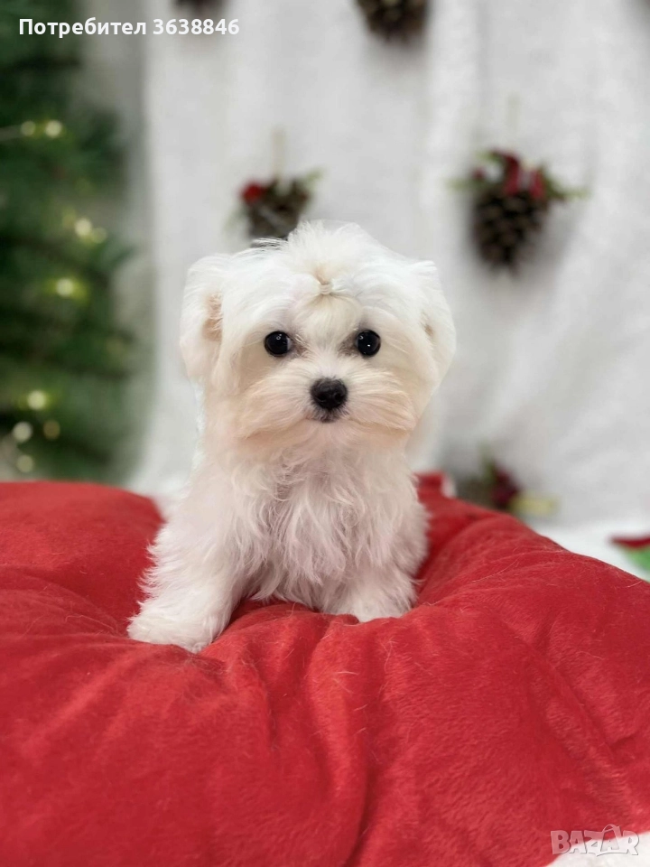 В продажба малтийска болонка теакъп внос от сърбия.Малката е на 3 м с изградени навици,FCI родословие и очаквано тегло в зряла възраст 1600,1700кг на първите 2 снимки родителите.При интерес изпращам снимки и клип на кученцето.То може да бъде доставено до Бг на 30.12 при предварителна поръчка и капаро.