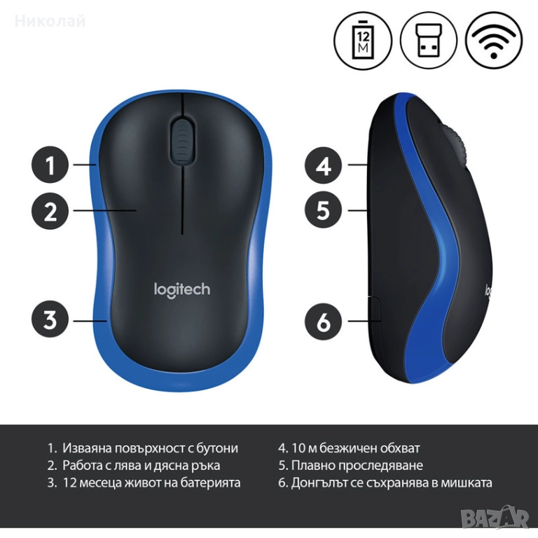 Мишка LOGITECH M185 BLUE 910-002236 син цвят, безжична връзка, снимка 1 - Клавиатури и мишки - 52771424 Мишка LOGITECH M185 BLUE 910-002236 син цвят, безжична връзка, снимка 2 - Клавиатури и мишки - 52771424 Мишка LOGITECH M185 BLUE 910-002236 син цвят, безжична връзка, снимка 3 - Клавиатури и мишки - 52771424 Мишка LOGITECH M185 BLUE 910-002236 син цвят, безжична връзка, снимка 4 - Клавиатури и мишки - 52771424 Мишка LOGITECH M185 BLUE 910-002236 син цвят, безжична връзка, снимка 5 - Клавиатури и мишки - 52771424 1/5