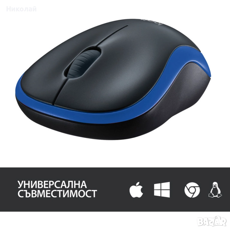 Мишка LOGITECH M185 BLUE 910-002236 син цвят, безжична връзка → Обява 52771424