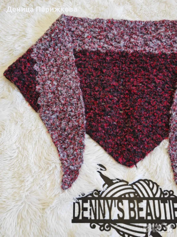 Ръчно плетен триъгълен шал наметка "Акцент"