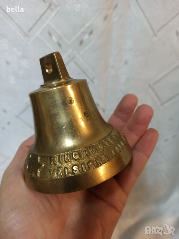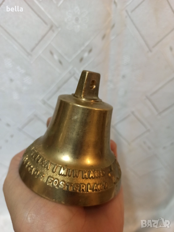Бронзова камбана хубав звук ,обща дължина 9 см надписи и звезда ., снимка 1 - Антикварни и старинни предмети - 52771811 Бронзова камбана хубав звук ,обща дължина 9 см надписи и звезда ., снимка 2 - Антикварни и старинни предмети - 52771811 Бронзова камбана хубав звук ,обща дължина 9 см надписи и звезда ., снимка 3 - Антикварни и старинни предмети - 52771811 Бронзова камбана хубав звук ,обща дължина 9 см надписи и звезда ., снимка 4 - Антикварни и старинни предмети - 52771811 Бронзова камбана хубав звук ,обща дължина 9 см надписи и звезда ., снимка 5 - Антикварни и старинни предмети - 52771811 Бронзова камбана хубав звук ,обща дължина 9 см надписи и звезда ., снимка 6 - Антикварни и старинни предмети - 52771811 1/6
