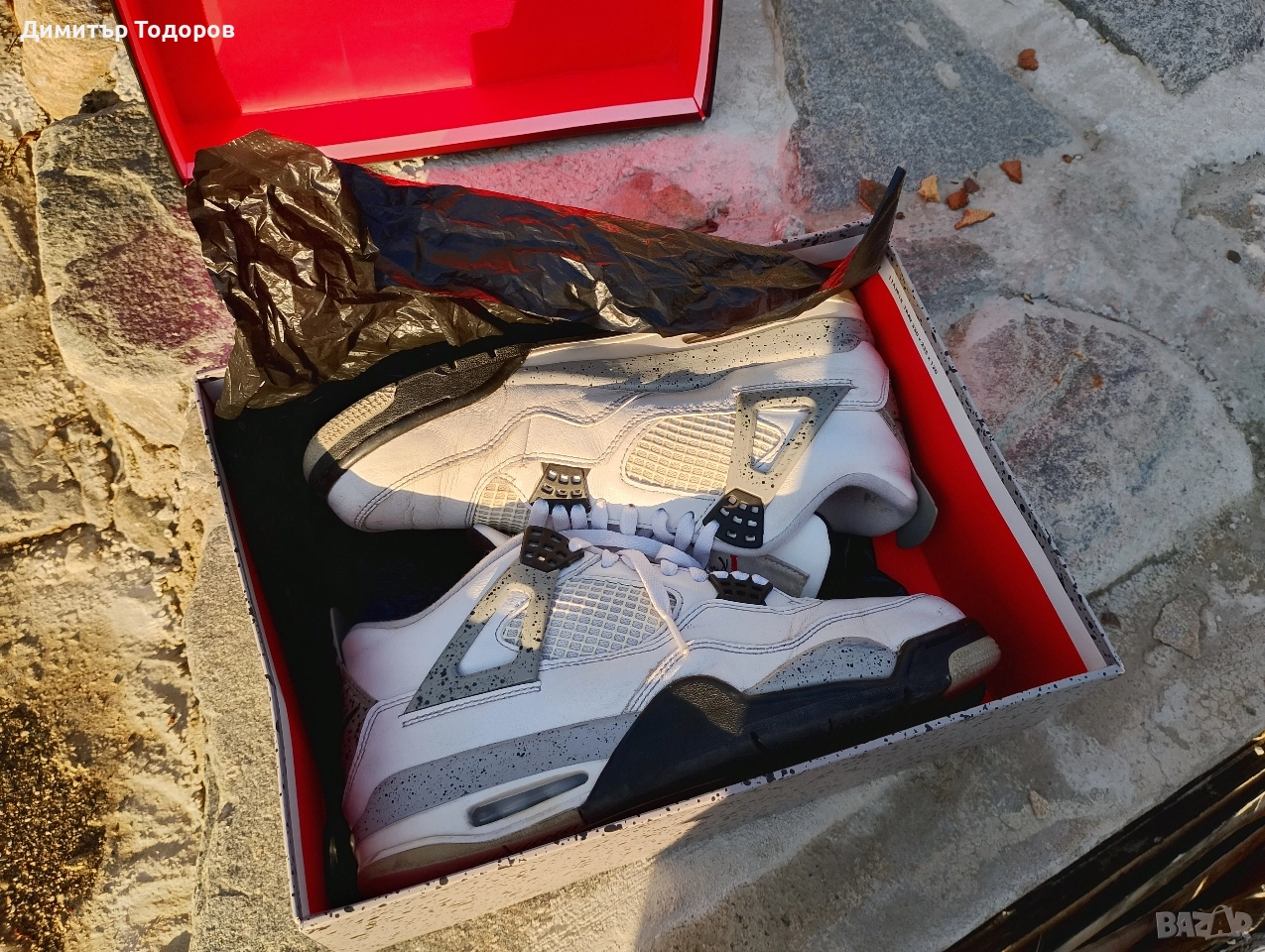 Здравейте, продавам Nike Air Jordan 4 OG White cement 2016, в много добро състояние, доста редки, един от най-търсените модели на марката....купувани са от лицензиран магазин на Nike....цените им достигат над 350 долара и все повече се вдигат....43 номер са, но всеки, който разбира от Jordan, знае, че са половин до един номер по малки.......