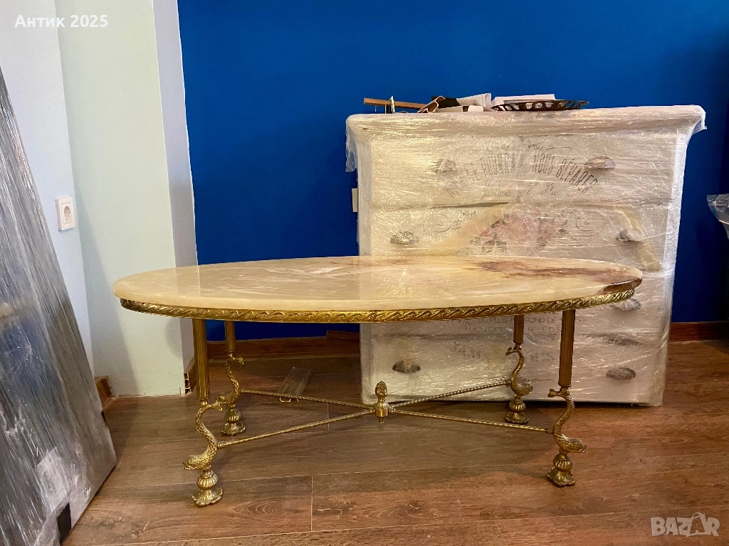 Масата е много тежка, плотът е цял, не е имитация. Ефектен акцентен предмет за всекидневна, кабинет, салон или хотел. Подходяща за класически и винтидж интериори.