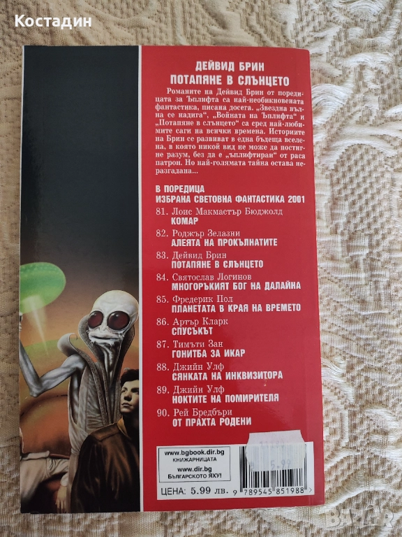 Продава се книгата на Дейвид Брин - Потапяне в слънцето. Изключително запазена. Издание на ИК Бард.