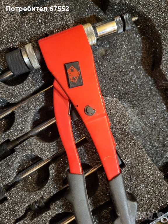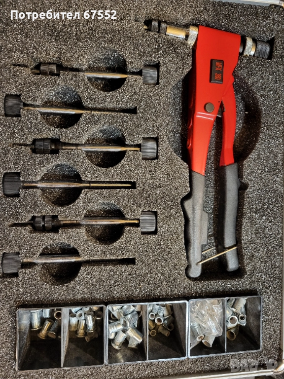 В отлично състояние. Комплектът е за нит-гайки М3-М6 и нит-болтове М4-М6.