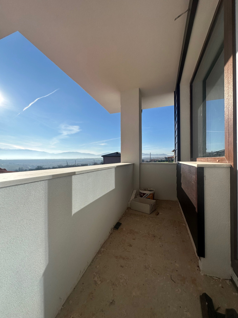 Втори етаж: преддверие, родителска спалня с голяма гардеробна и собствена баня с тоалетна и тераса, трета спалня, с баня с тоалетна и тераса. Пред къщата е обособена веранда с възможност за изграждане на барбекю, както и две паркоместа. Къщата е построена с висококачествени материали петкамерна PVC дограма с троен стъклопакет, фасадна облицовка с камък и дърво, както и дишаща минерална мазилка. В проекта на къщата е заложена термопомпена инсталация за отопление и охлаждане /въздух-вода/, пречиствателна станция за отпадни води, високоефективна топлоизолация. Къщите в комплекса са четири, в близост има множество затворени комплекси, хранителен магазин и община Божурище. Панорамни, нескриваема гледки, югоизточно изложение, което дава светлина през целия ден. Агенцията безплатно съдейства при кредитиране и предоставя юридическа консултация. За повече информация и огледи: Ива Иванова Алексова -0898 888 459