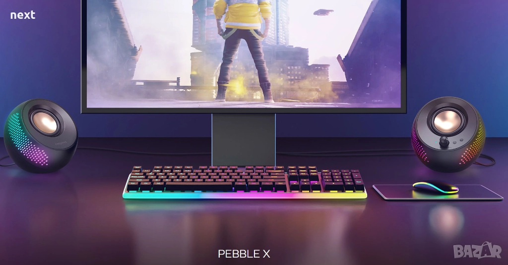дизайн с матово покритие и персонализируемо RGB осветление, Creative Pebble X