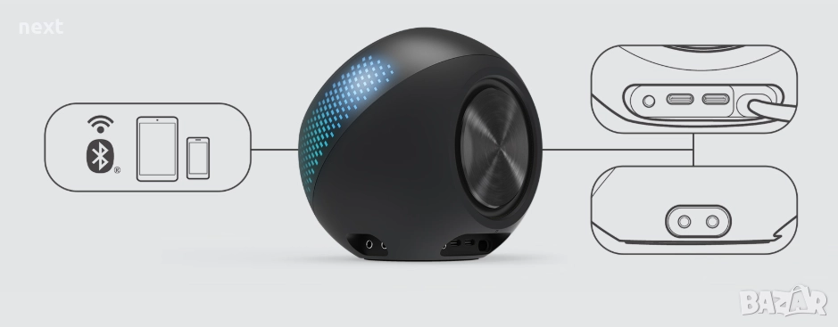 безжичен режим с Creative Pebble X , който предлага възпроизвеждане на аудио от