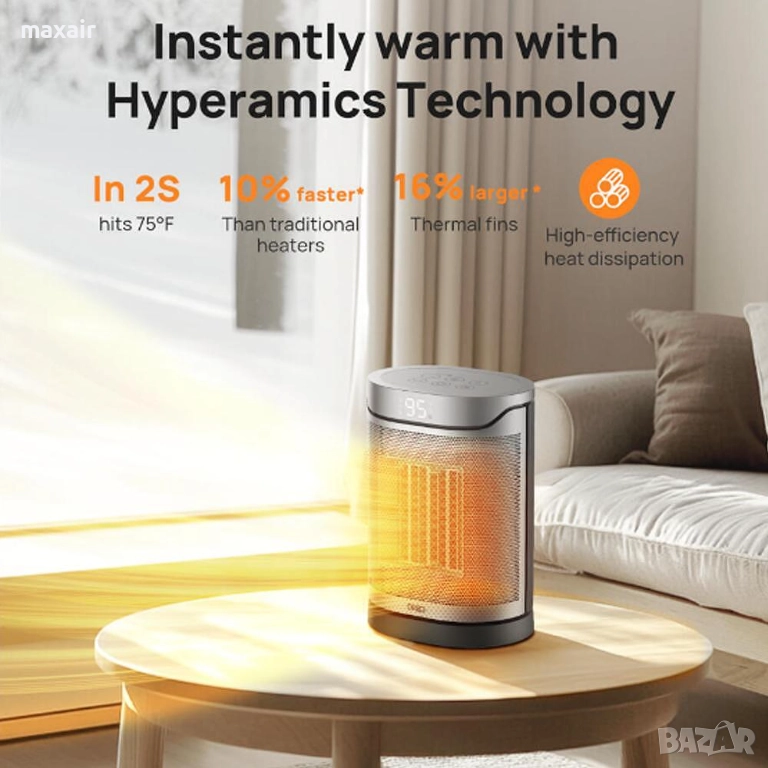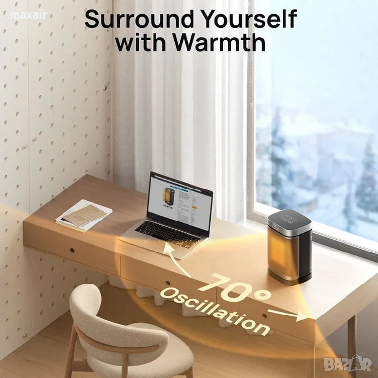 Усъвършенстваният топлинен уред използва функция за въртене, която осигурява 70% по-широко покритие на топлината и 250% по-дълъг обхват на отопление, обгръщайки стаята ви с топлина и комфорт.