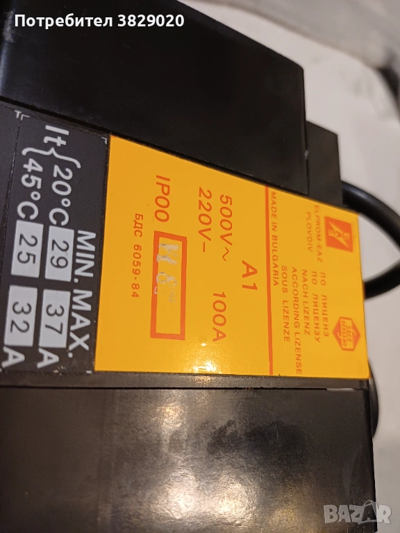 Автоматичен прекъсвач А1 100А. За повече информация вижте снимките.