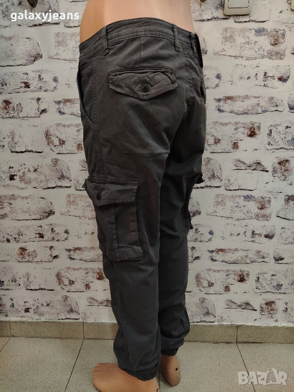 Карго панталони, Цвят сив, С цип, С ластик на крачола, 4 джоба с капак, 2 италиански джоба, Плътен памук 100%, Внос Турция