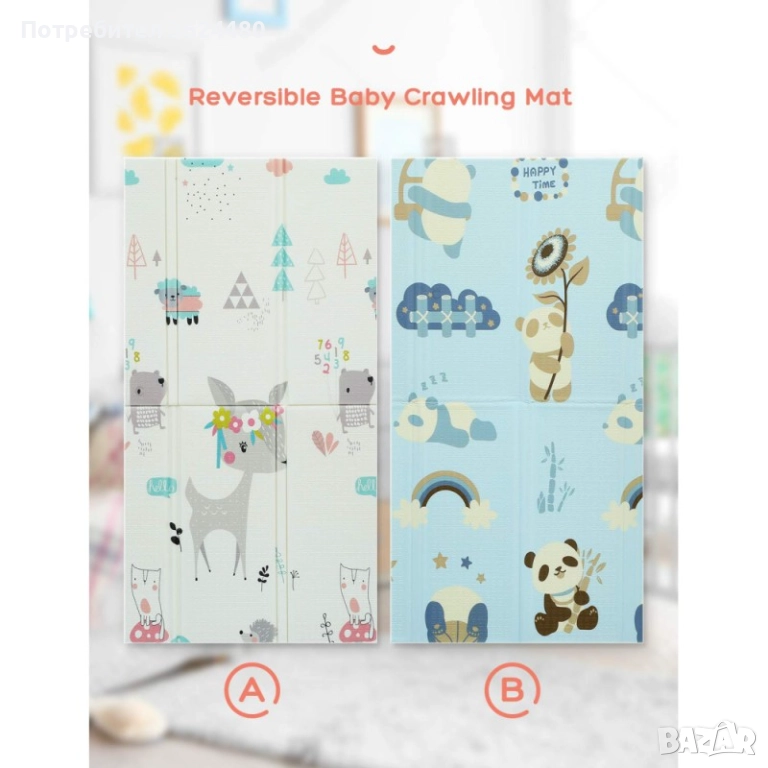 Водоустойчива подложка за игра - сгъваемо шарено килимче
