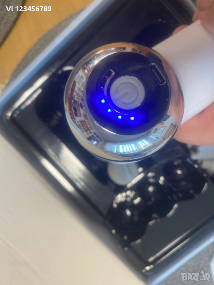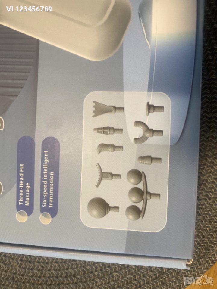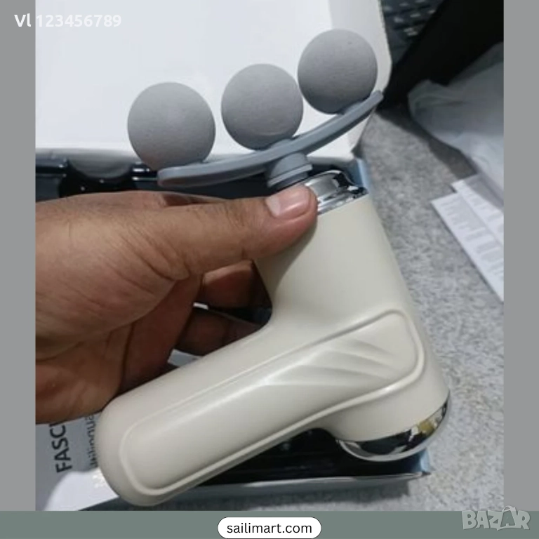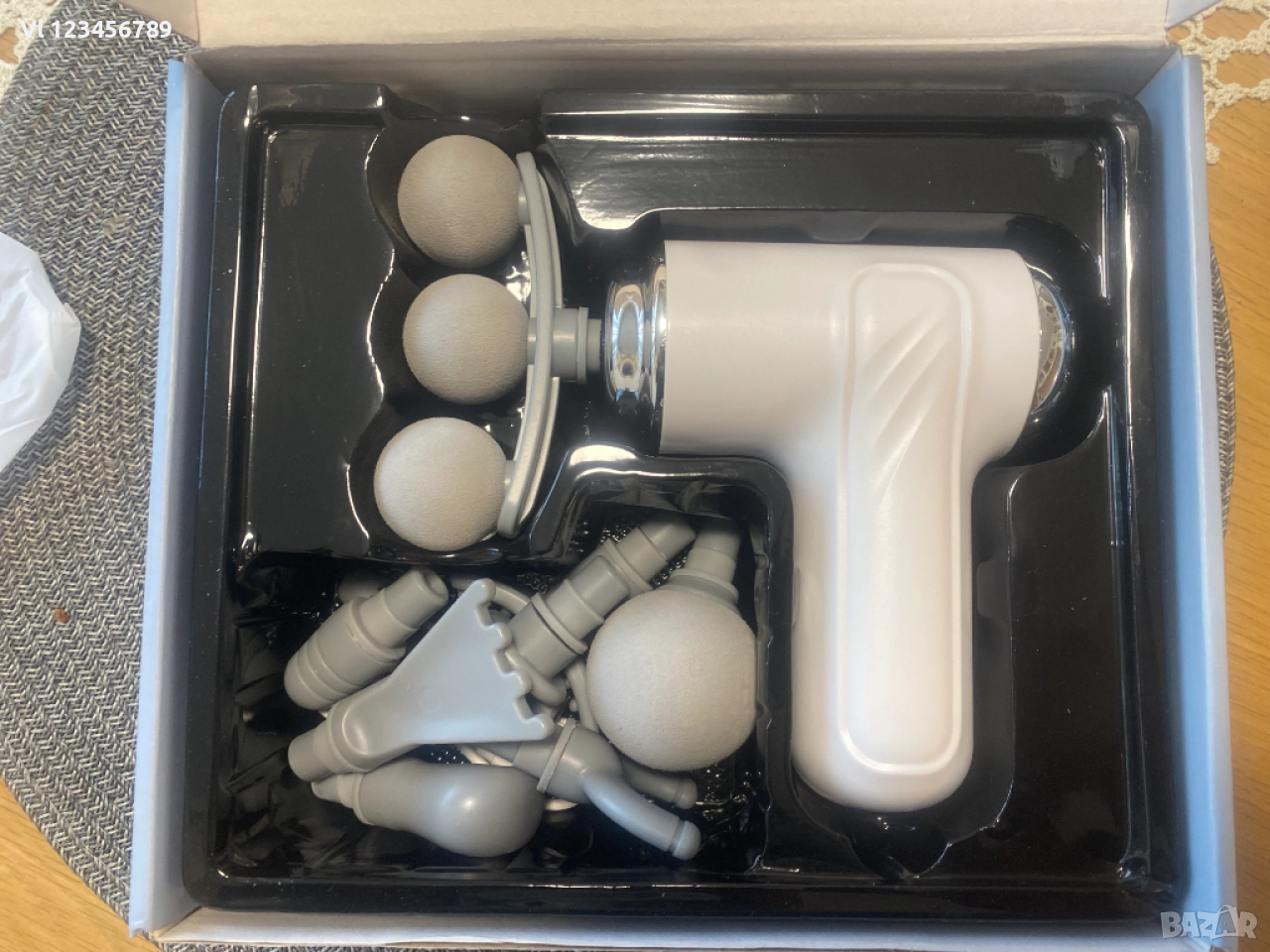 Ръчен акумулаторен масажор за тяло, тип пистолет, с множество масажни глави даващи възможност за индивидуализиран подход отговарящ на конкретната потребност.