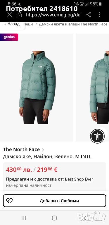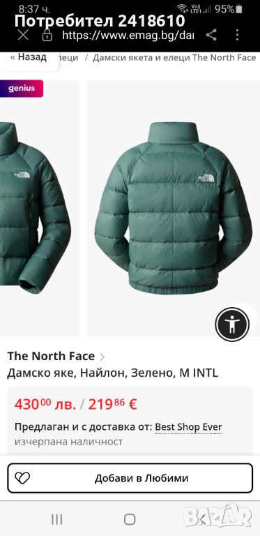 Оригинално Дамско плътно олекотено пухено яке, перфектно състояние след употреба!