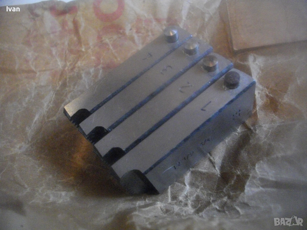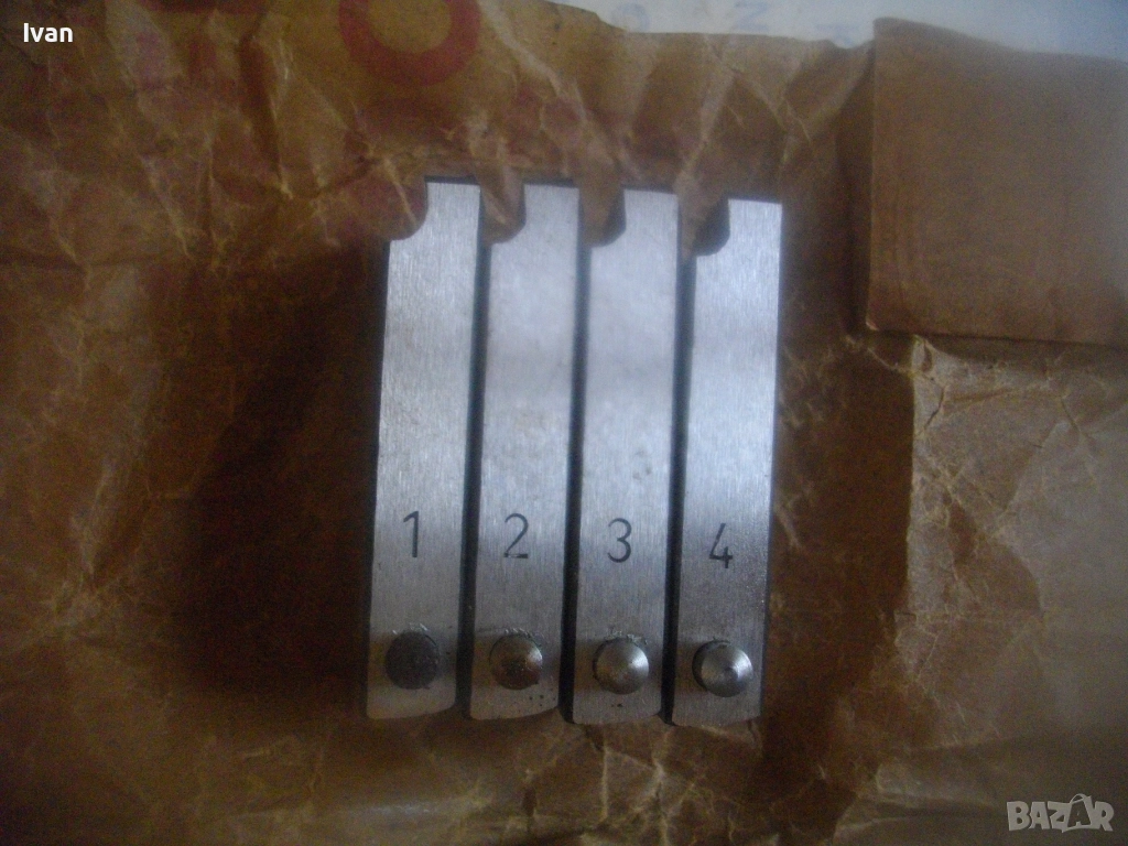 Съвсем нов, неизползван и неупотребяван комплект от 4 бр. режещи лецбонарезни ножове челюсти резци за нмска винтонарезка винторез чешмеджийска плашка за направа и ремонт на резби на тръби размер 1/2" цол и 3/4" цол. Ножовете са оригинални немски ФРГ старо качество за винторезна глава винтонарезка ALROWA. Производство на ковцерна ROLLER. Ножовете са от закалена инструментлна стомана, от старото качество материал,, което в съвремието липсва. Цена на комплекта - 159 лв. (81.30 €).