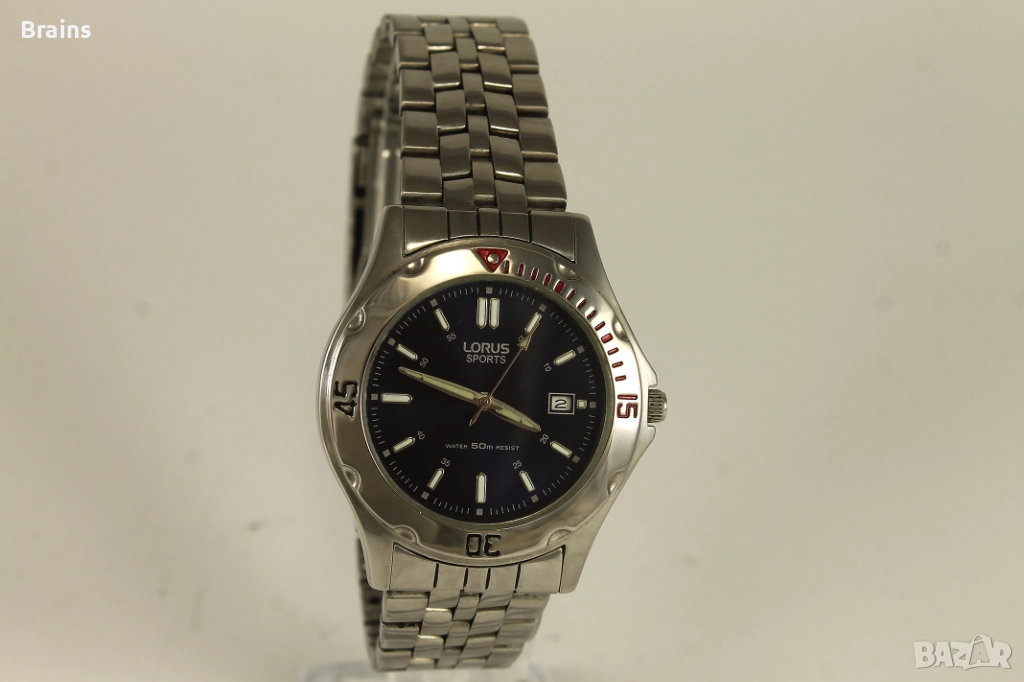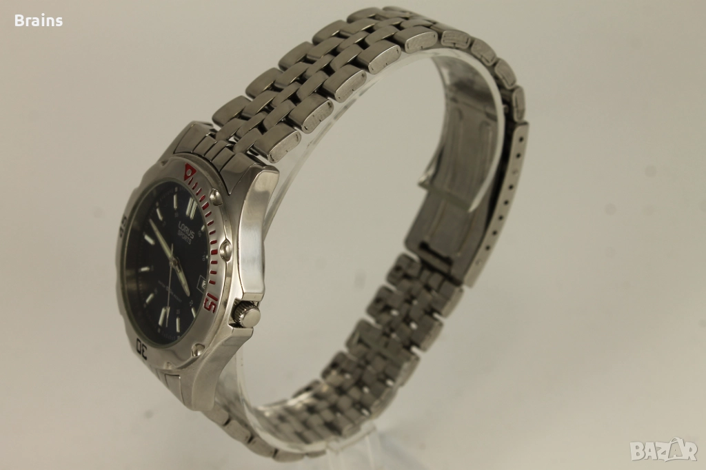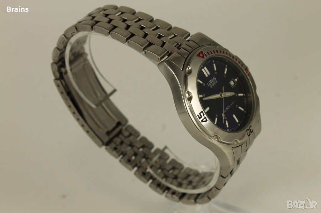 Спортен стоманен мъжки кварцов часовникLORUS SPORTS by SEIKO. Перфектно състояние. Всички функции работят, работи точно. Веригата е със всички налични звена.