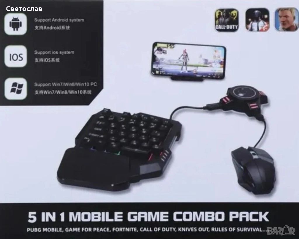 Геймърска мишка + клавиатура за телефон, смартфон и таблет