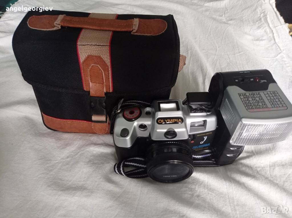 Лентов 35 мм. Фотоапарат Olympia DL2000A. Отличен външен вид, напълно функциониращ, чиста оптика. С оригиналната си чанта. Захранва се с две батерии в тялото и две в светкавицата.
