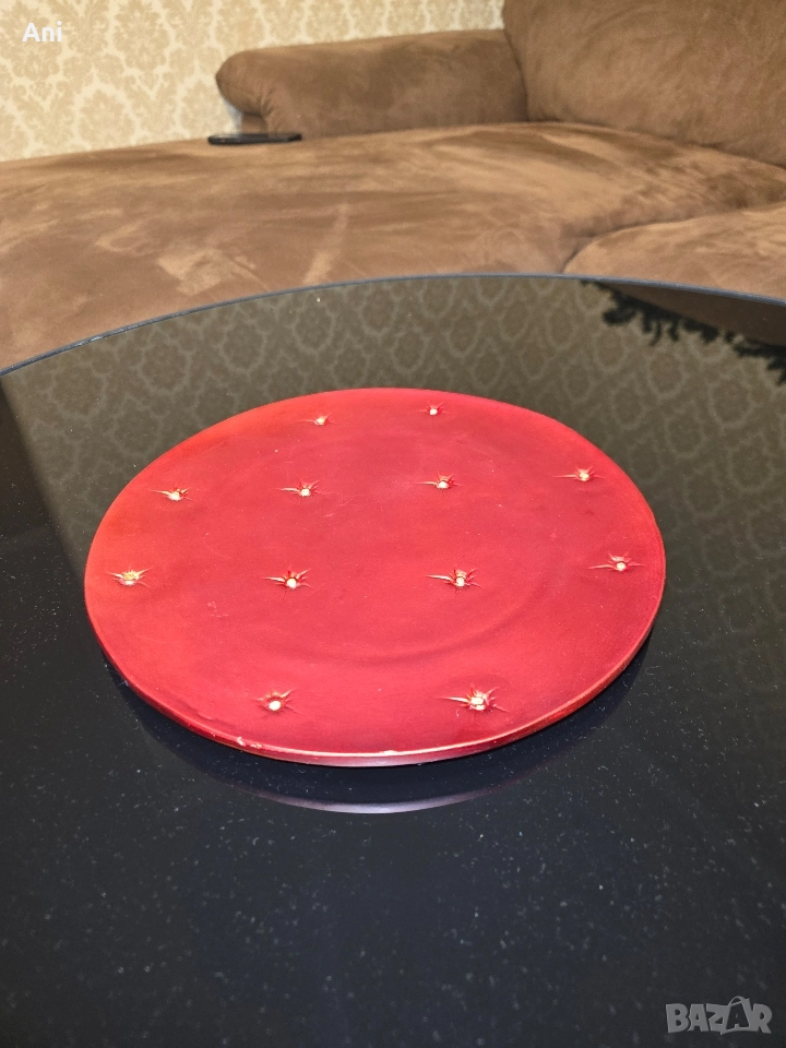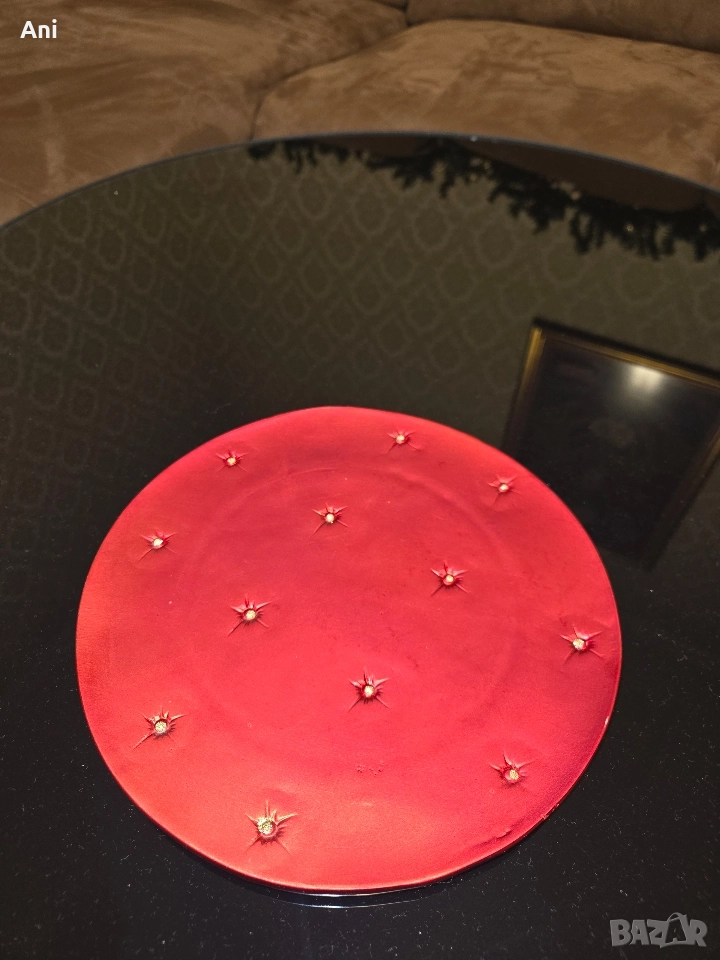 Изключително красиви, червени празнични чинии подходящи за всеки повод и за всяко празненство. Може да се ползват и просто за декор. Изключително красиво стоят на маса, много здрави тежки и красиви чинии. Много подходящи и за подарък.