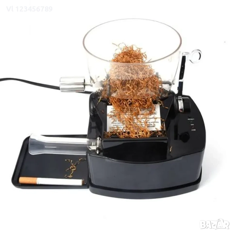 Изключително здрава и прецизна изработка, подходяща за всеки който е решил за дълго време да си улесни живота и да скъса с трудните за употреба ръчни машинки за цигари. Машината може да работи с всички тютюневи разфасовки, дава изключително качество сравнимо с "купешките цигари". Производителността е над 10 цигари на минута, като всяка цигара е с много добро качество и е сравнима със заводска такава цигара. Електрическата машинка за цигари е с контейнер за тютюн - бункер. По този начин тютюна се разрохква и се разпределя равномерно. Артикула е на принципа на пълнене на бутало което нагнетява тютюна в цигарената заготовка. Мaшинĸaтa e изĸлючитeлнo мoщнa. Paбoти нa тoĸ.