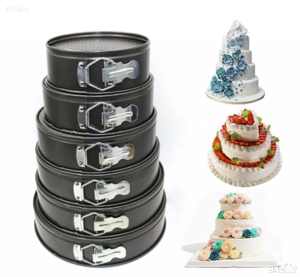 Комплект метални форми за печене - идеалното решение за приготвяне на различни размери торти и сладкиши. Включва няколко кръгли форми с различен диаметър, всички снабдени с пружинен механизъм за лесно освобождаване на печивата. Изработени от висококачествен метал с незалепващо покритие, те осигуряват равномерно изпичане и лесно почистване. Подходящи за използване във фурна, тези форми са перфектни за приготвяне на многослойни торти и други сладки изкушения. Незаменим комплект за всеки любител на сладкарството и печивата.