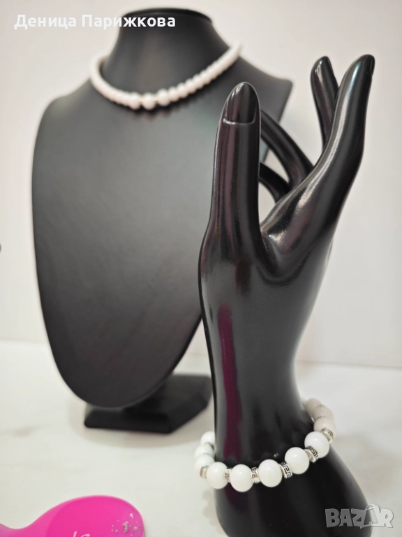 стилен комплект ръчно изработени бижута с бял ахат, подбран заради