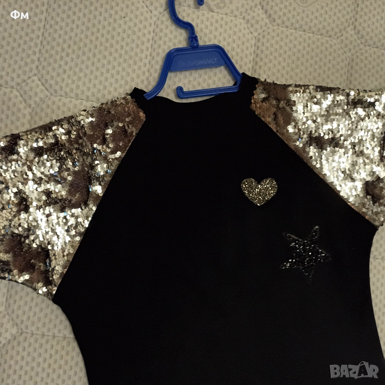 Парти рокля с пайети и пера, подходяща за всеки повод. Носена е няколко пъти.