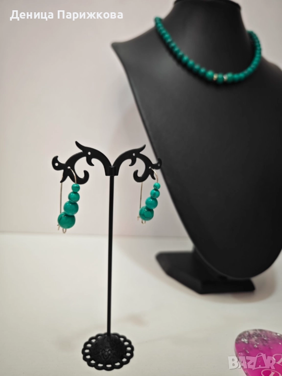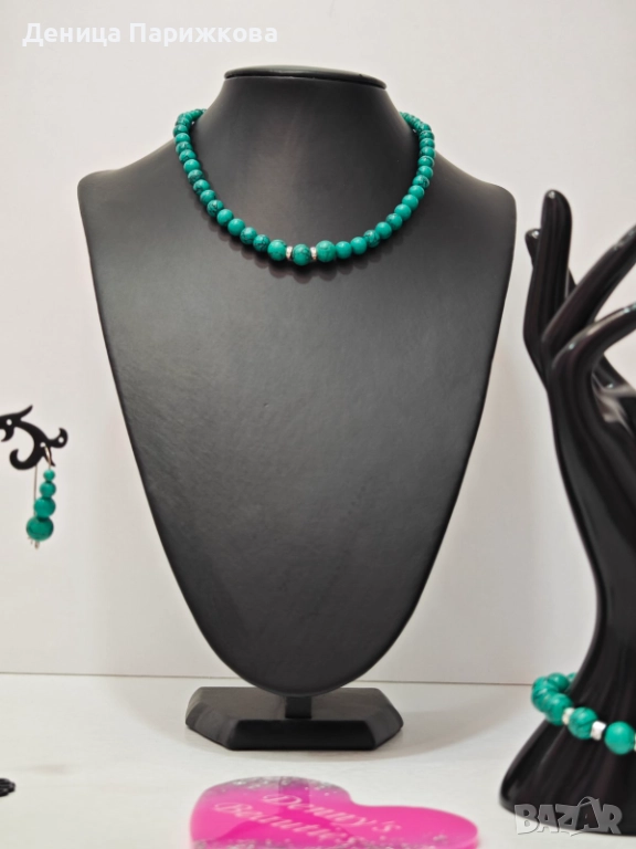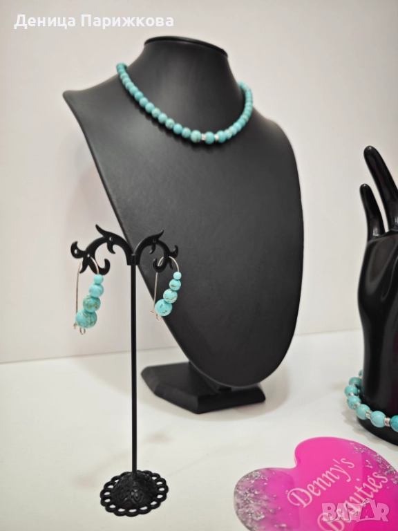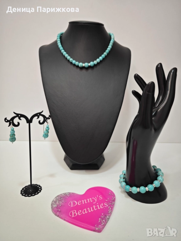 Свеж и изразителен ръчно изработен комплект бижута с тюркоаз (наличен в два нюанса), вдъхновен от морските нюанси и естествената хармония.