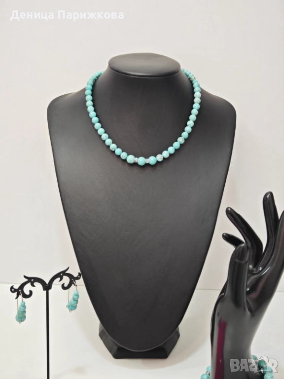 Ръчно изработен комплект бижута с тюркоаз – гривна, колие и обеци