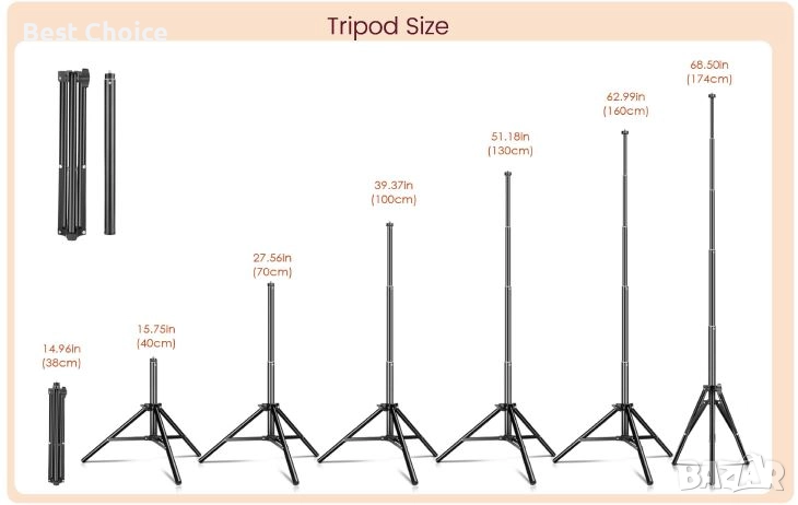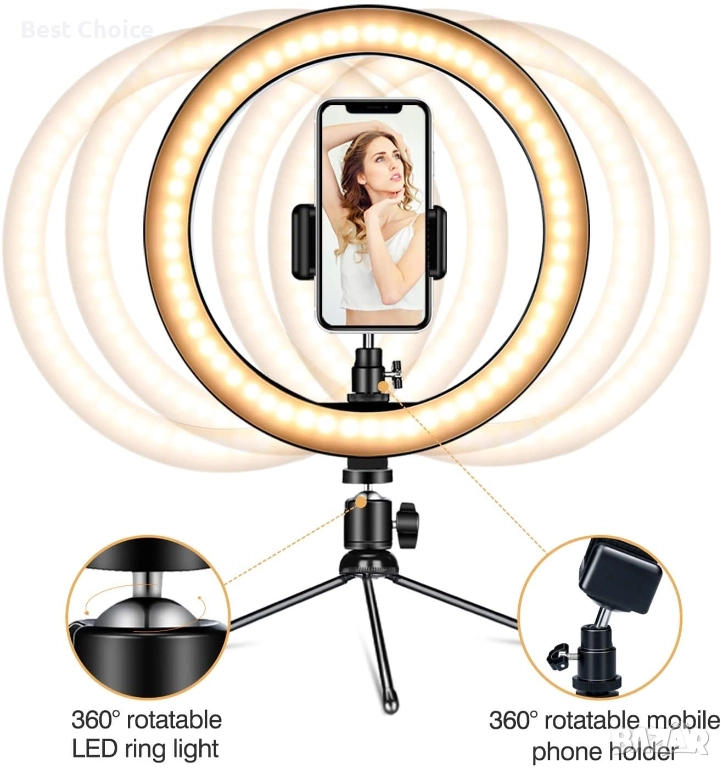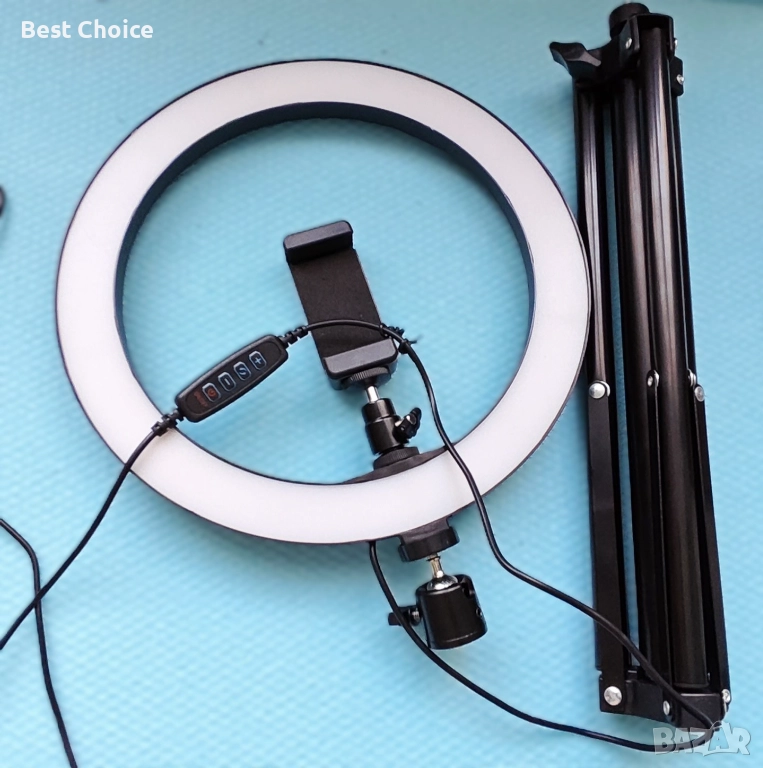 Регулируема стойка: Включва се регулируем статив и държач за телефон, които позволяват различни ъгли и височини. Размерът на стойката може да се регулира от 0,40см до 1,75 метра
