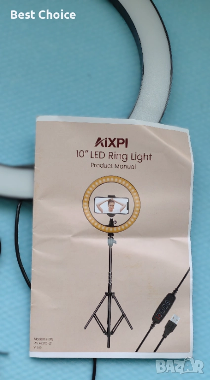 10-инчова LED ринг лампа AIXPI с USB захранване.