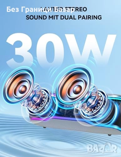 Мощен 30W стерео звук с дълбок бас и кристално чисти високи честоти