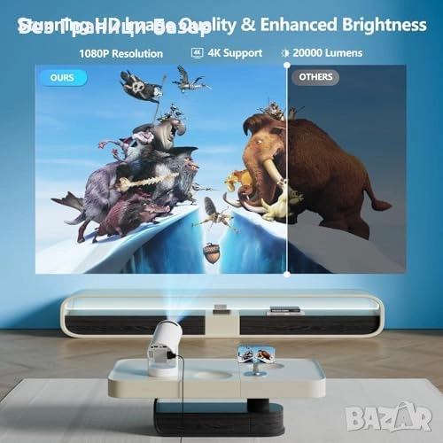 Нов Преносим мини проектор 1080P с поддръжка на 4K, WiFi6 и Bluetooth 5.0