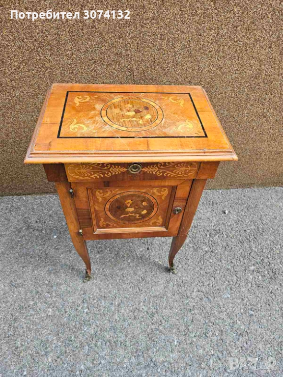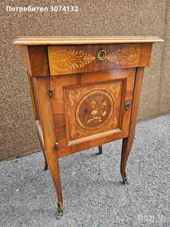 Шкафче с интарзия и обков от месинг с размери 48/34/72 см. Моля разгледайте и другите ми обяви.