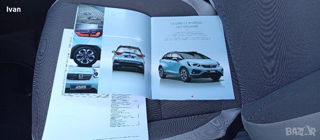 HONDA JAZZ 2023г. 1.5 e-HEV Hibryd, EURO 6B, Power by Japan, Нов внос Italia. Японско съвършенство неразличимо от нов автомобил, перфектен японски дизайн и изработка, практичен, икономичен, функционален и маневрен автомобил, перфектен за ежедневна употреба в градски и извънградски условия и за извън пътя. Надежден японски изпитан с годините 1,5 литров двигател, които напомня за себе си шепнейки, SWT автоматична скоростна кутия и електрически агрегат осъщестяват изключителна динамика и бързо ускорение в съчетание с нисък разход 2,5литра на 100км. Ергономичен, просторен, с голям обем за товарене, ски рейлинг и голям просвет. Съоръжен с всички модерни екстри като: камера за задно и предно виждане, мултимедия и навигация с YOUTUBE, дистроник за спазване на дистанцията, автоматично следене на пътя и пътните знаци, разпознаване на пешеходци и автоматично спиране, лицево разпознаване на водача и автоматично отваряне. Два ключа, пълна сервизна и заводска документация, НОВ ВНОС от ITALIA. Реални 65000км. Нови гуми. При сериозен интерес предоставям VIN код за проверка на реални километри.
